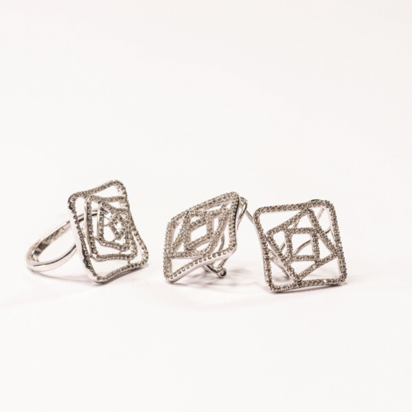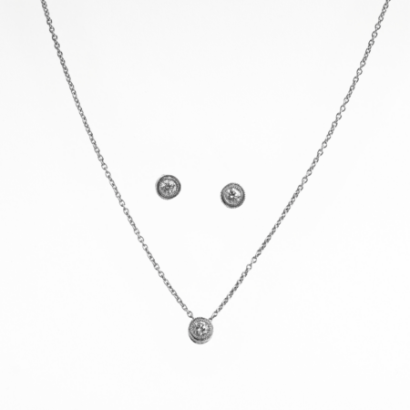 Juego aretes gargantilla dije zafiro & diamantes naturales en oro blanco 14K