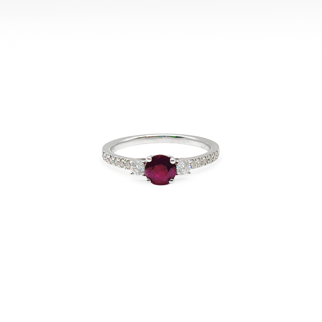 Anillo rubí oval & diamantes laterales 0.25 Ct