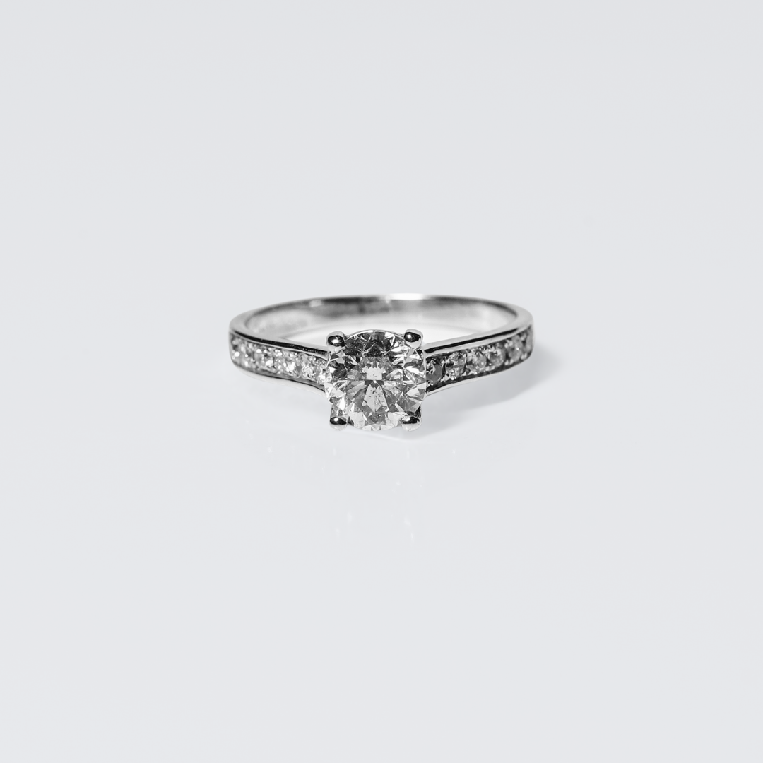 Diamantes: Central .90 Pts + Laterales .24 Pts = Total 1.14 Ct