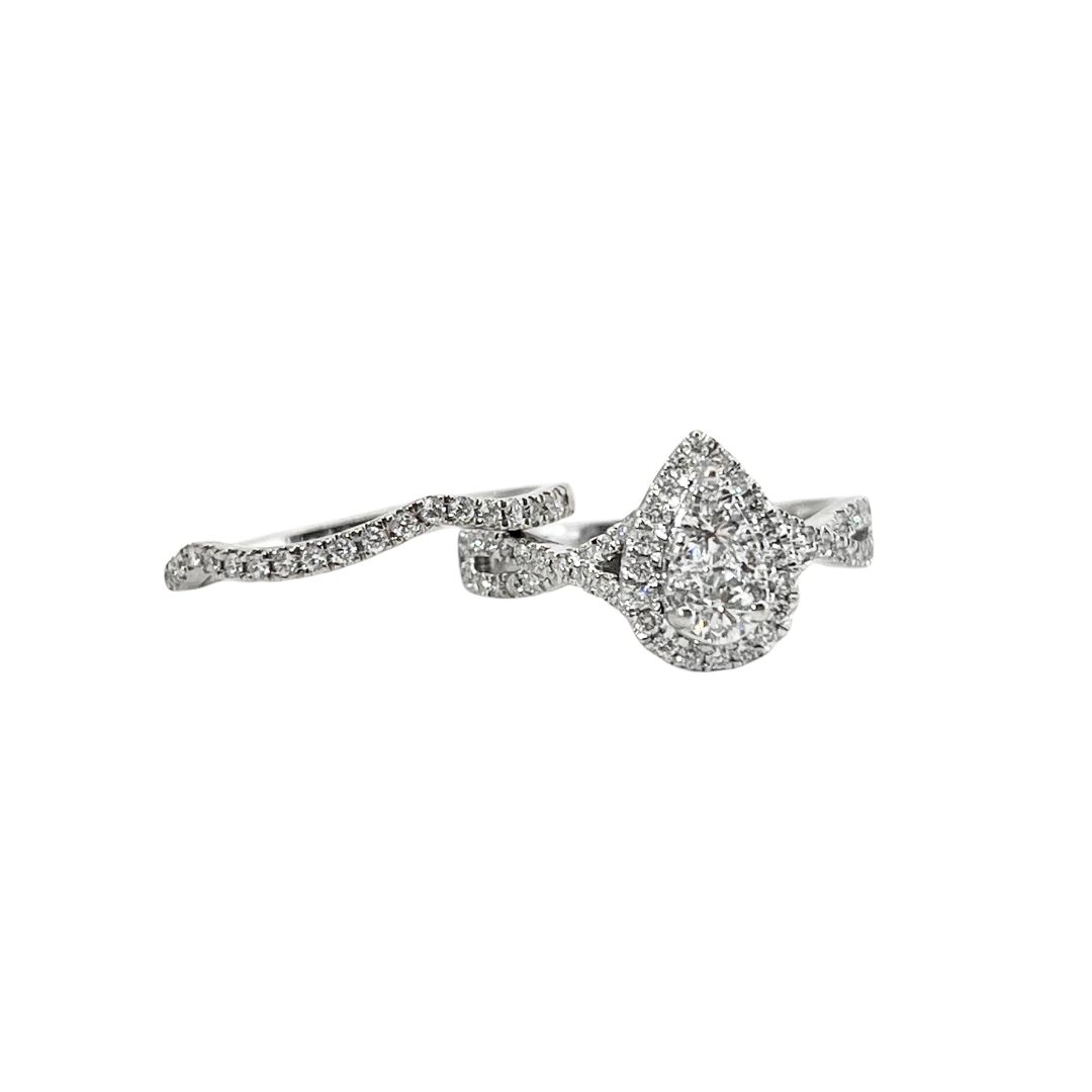 Anillo y churumbela con diamantes naturales en oro blanco 14K