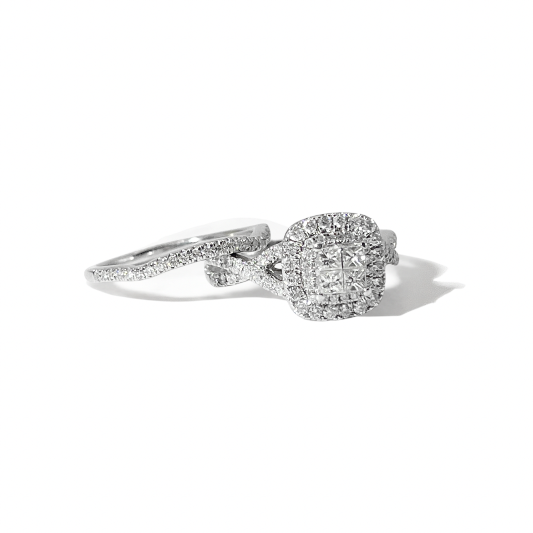 Anillo y churumbela de diamantes naturales en oro blanco 14K