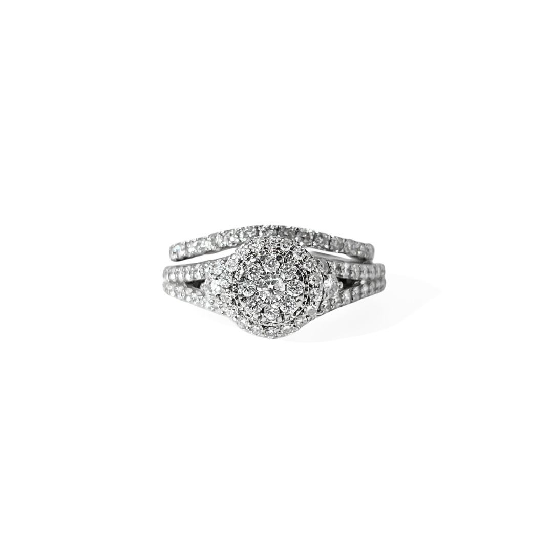 Anillo y churumbela con diamantes naturales en oro blanco 14K