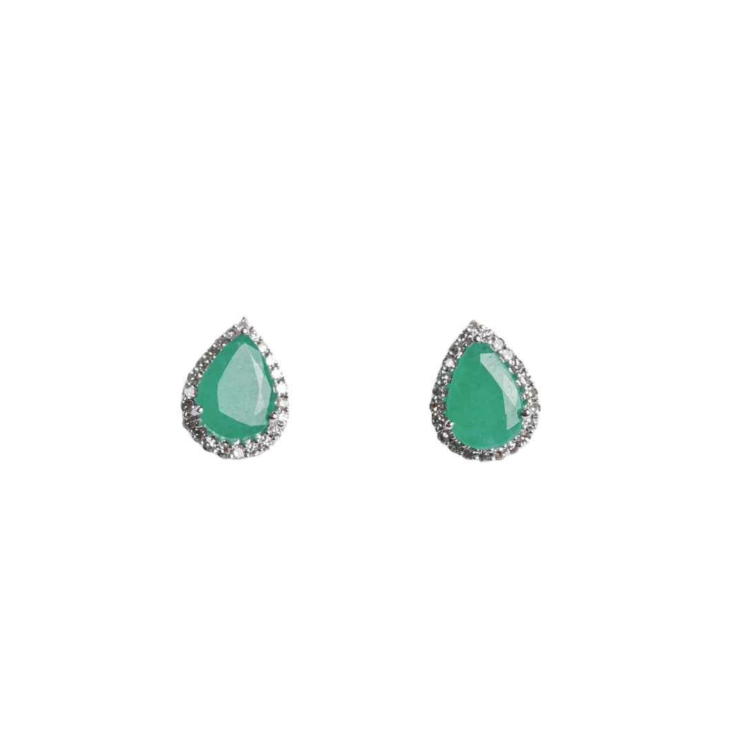 Aretes de esmeralda y diamantes en oro blanco 14K