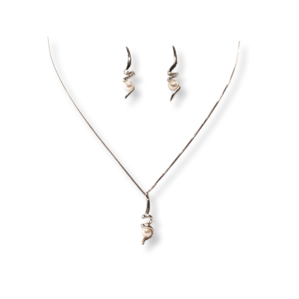 Juego de aretes de perlas caracol con diamantes naturales en oro blanco 14K