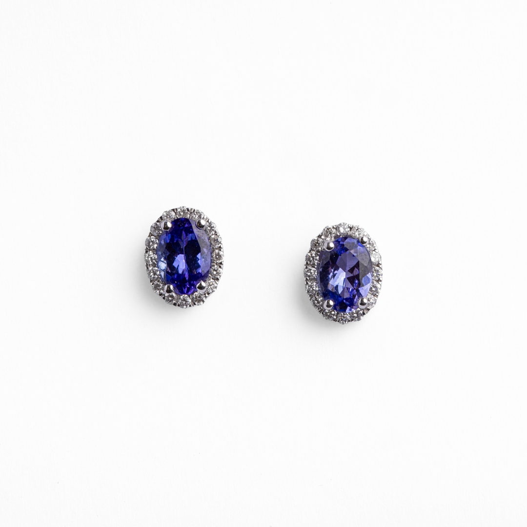 Aretes de tanzanita con diamantes naturales en oro blanco 14K