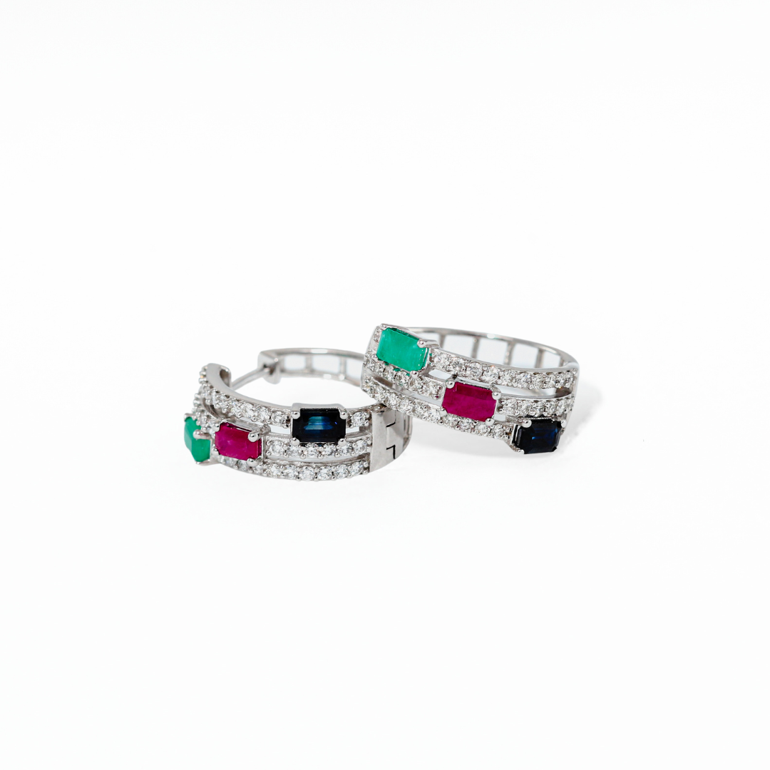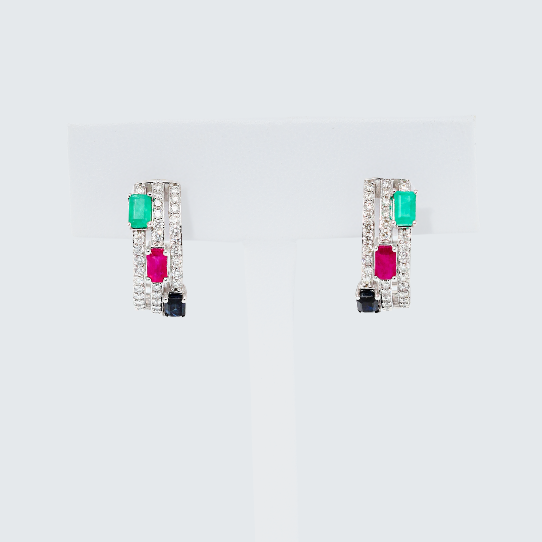 Aretes de diamantes naturales con piedras de zafiro, rubí y esmeralda