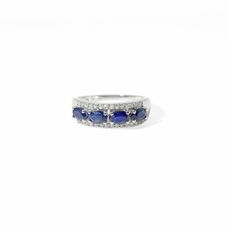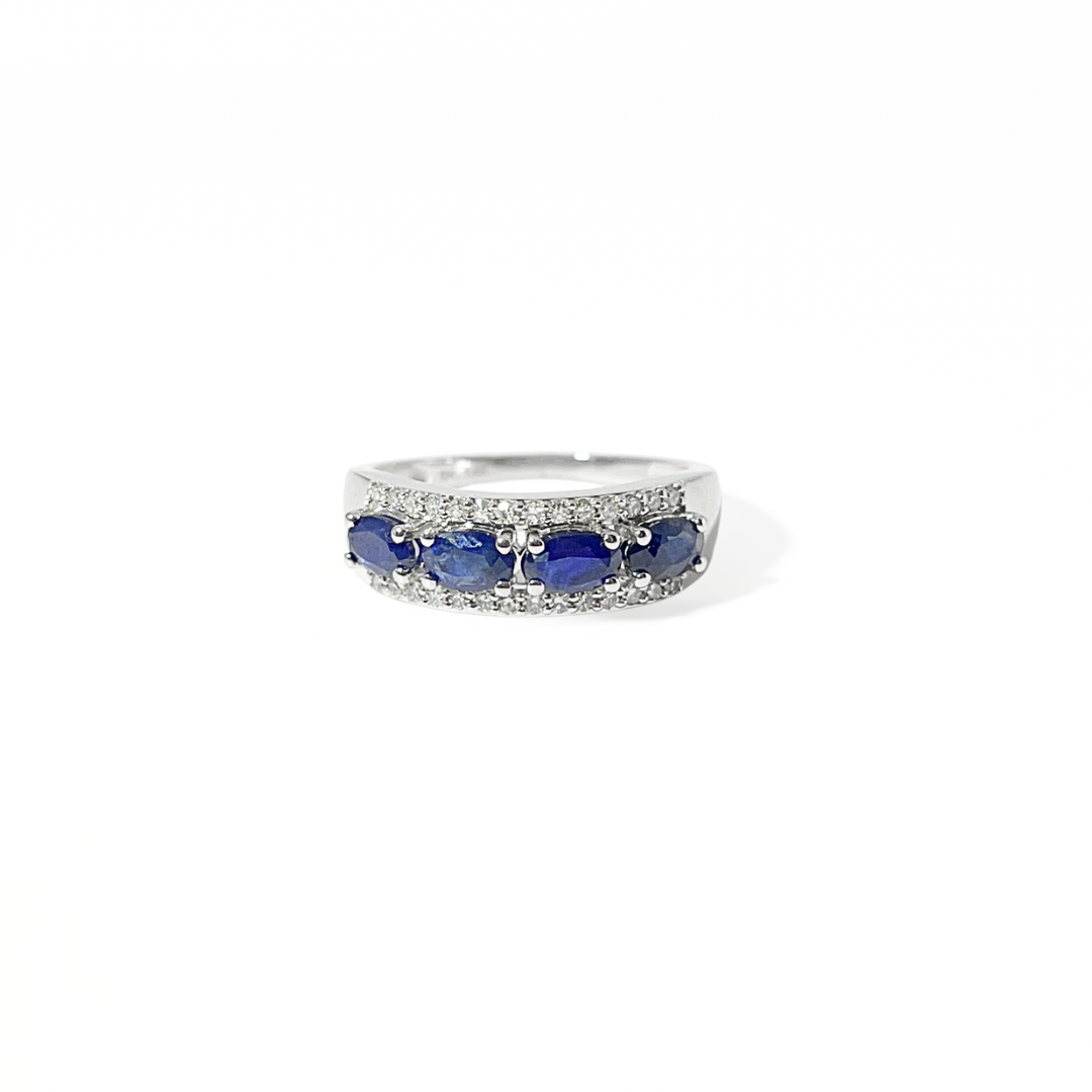 Churumbela con zafiros y diamantes naturales en oro blanco 14K